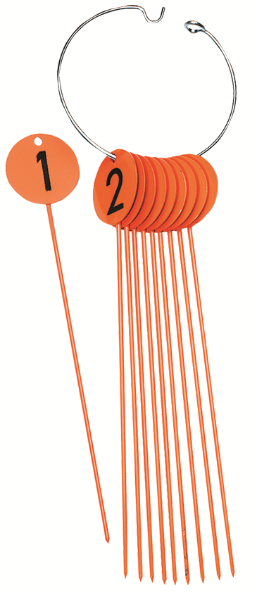 orange, 10 Nadeln, Nummerierung 0 bis 9, ein Ring