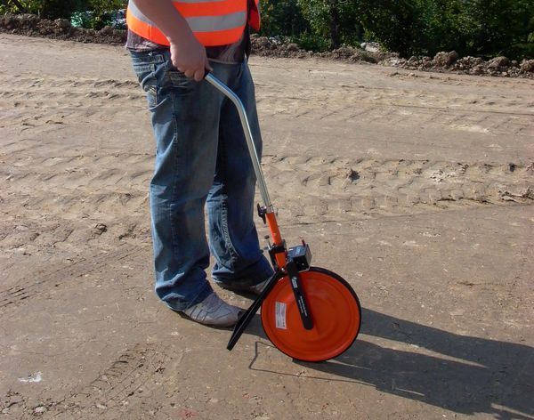Messrad, Standardmodell, Vollrad, Toleranz <0.05%, Rad-u 1m, Laufrad-Durchmesser 318,5mm, Messbereich bis 9999,99m/cm-Ablesung, Bauwarnfarbe orange