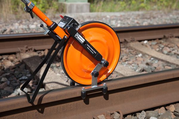 zur Montage, Messrad wird sicher auf den Gleisen gehalten